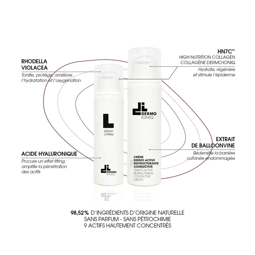 •HN7C™, le caviar de l’anti-âge, innovation majeure signée DERMO IONIQ, le HN7C™ (High Nutrition collagen), unique complexe bioactif composé de 7 poids moléculaire de collagène a nécessité 10 ans de recherches, de développements et de tests cliniques pour arriver à une efficacité irréprochable. Extrait et produit dans une démarche 100% responsable, en circuit cout et 100% traçable. Le collagène HN7C™ est exceptionnel, unique, 100% naturel et pur à +99% et il se caractérise par un fort pouvoir nutritionnel qui accélère 2 fois plus vite le renouvellement cellulaire. Au cœur des soins DERMO IONIQ, il agit simultanément sur l’élasticité, la régénération et la jeunesse de la peau.